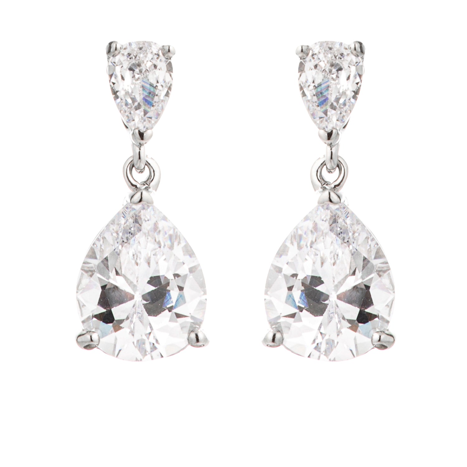 Rhodium Plated Double Pear Drop Earrings